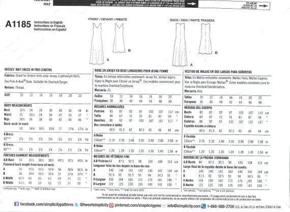 Uncut Simplicity Sewing Pattern 1185 Misses Knit Dress Size Etsy
