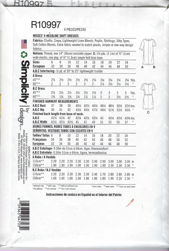 Uncut Simplicity Sewing Pattern 10997 9262 Misses V Neckline Etsy