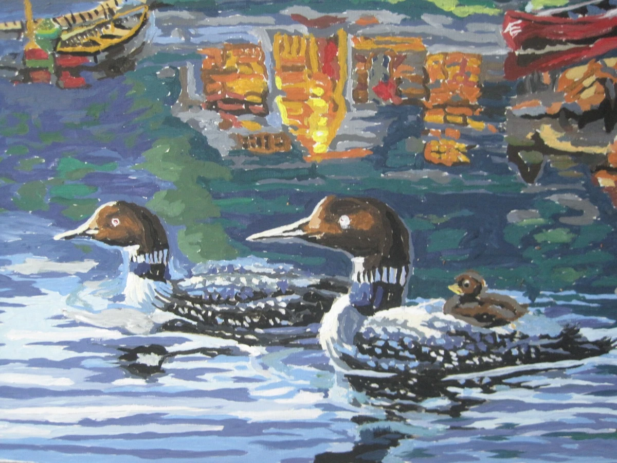 Vintage Paint By Numbers Painting 14 034 X 20 034 Ducks Cabin Red Truck Lake Ebay