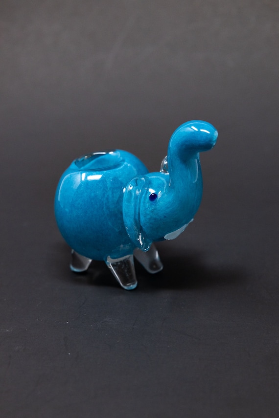 4 Teal Elephant Design Glass Tobacco Pipe Etsy Israel